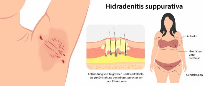 Bei Frauen sind hauptsächlich die Achseln von der Akne inversa betroffen, bei Männern eher die Analregion.