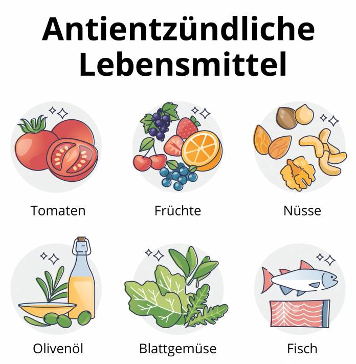 Eine entzündungshemmende Diät kann äußerst lecker und anregend sein. Die mediterrane Küche etwa punktet mit zahlreichen Wohlfühlrezepten und ist obendrein gesund: Früchte, Gemüse, auch in Rohkostform, Fisch und gesunde Fette (Olivenöl) liefern reichlich Mikronährstoffe und Ballaststoffe. Die Liste der Nahrungsmittel mit niedrigem glykämischem Index (mit nur geringen Auswirkungen auf den Insulinhaushalt) ist lang. Das Führen eines Ernährungstagebuchs hilft, Unverträglichkeiten aufzuspüren und deren Auslöser künftig zu vermeiden. Ein Verzicht auf Alkohol und Nikotin verringert das Risiko von Krankheitsschüben.