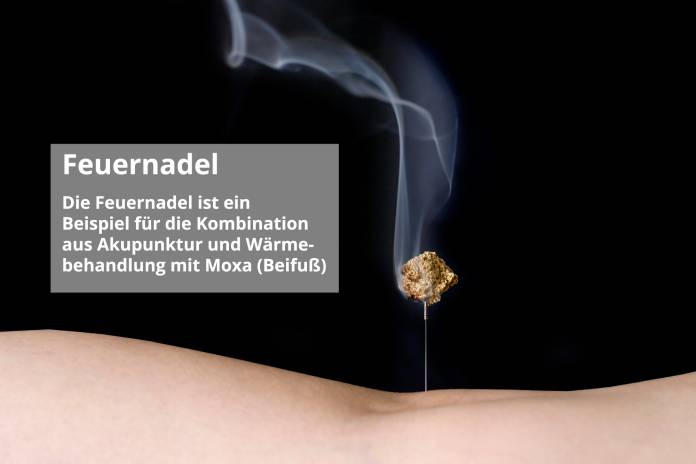 Akupunktur kann mit einer Moxa-Behandlung kombiniert werden. Mit Moxibustion werden Akupunkturpunkte oder eine Region des Körpers erwärmt. Es gibt viele Moxa-Behandlung. Allen gemein ist, dass zur Erwärmung der Punkte Beifuß verwendet wird. Beim direkten Moxa werden kleine Kugeln oder Fäden direkt auf der Haut angebracht und angezündet. Beim indirekten Moxa kommt es zu keiner Berührung zwischen der Haut und dem Beifuß. Moxa kann zum Beispiel auf einer Ingwerscheibe angezündet werden. Eine besondere Form von Moxa ist die Feuernadel. Dabei wird auf der Akupunkturnadel Beifuß aufgesetzt und angezündet. In China hat die Moxibustion als Therapieverfahren den gleich hohen Stellenwert wie die Akupunktur.