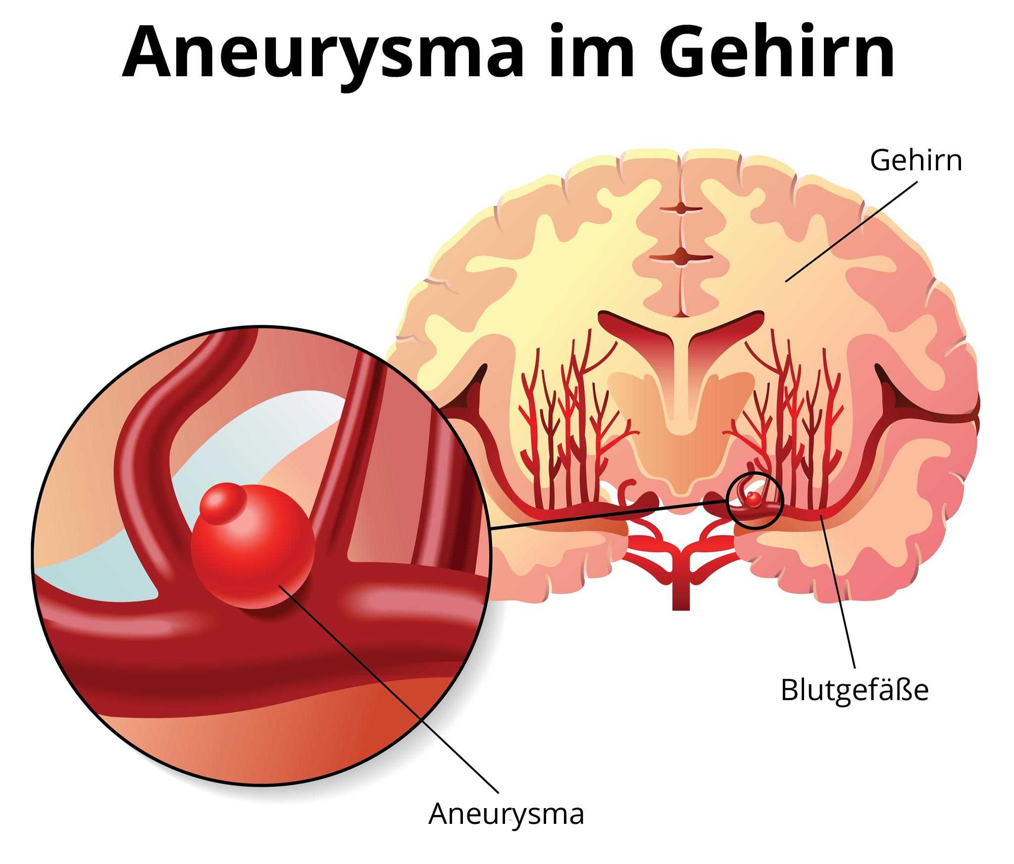 Ein Aneurysma im Gehirn ist eine Erweiterung einer Arterie, die zu Komplikationen führen kann. Eine solche Aussackung kann unter anderem durch ein schwaches Bindegewebe in der Gefäßwand und Bluthochdruck oder durch Arteriosklerose zustande kommen. Häufig befinden sich die Aneurysmen im Kopf an den Aufzweigungen (Bifurkationen) der Arterien.