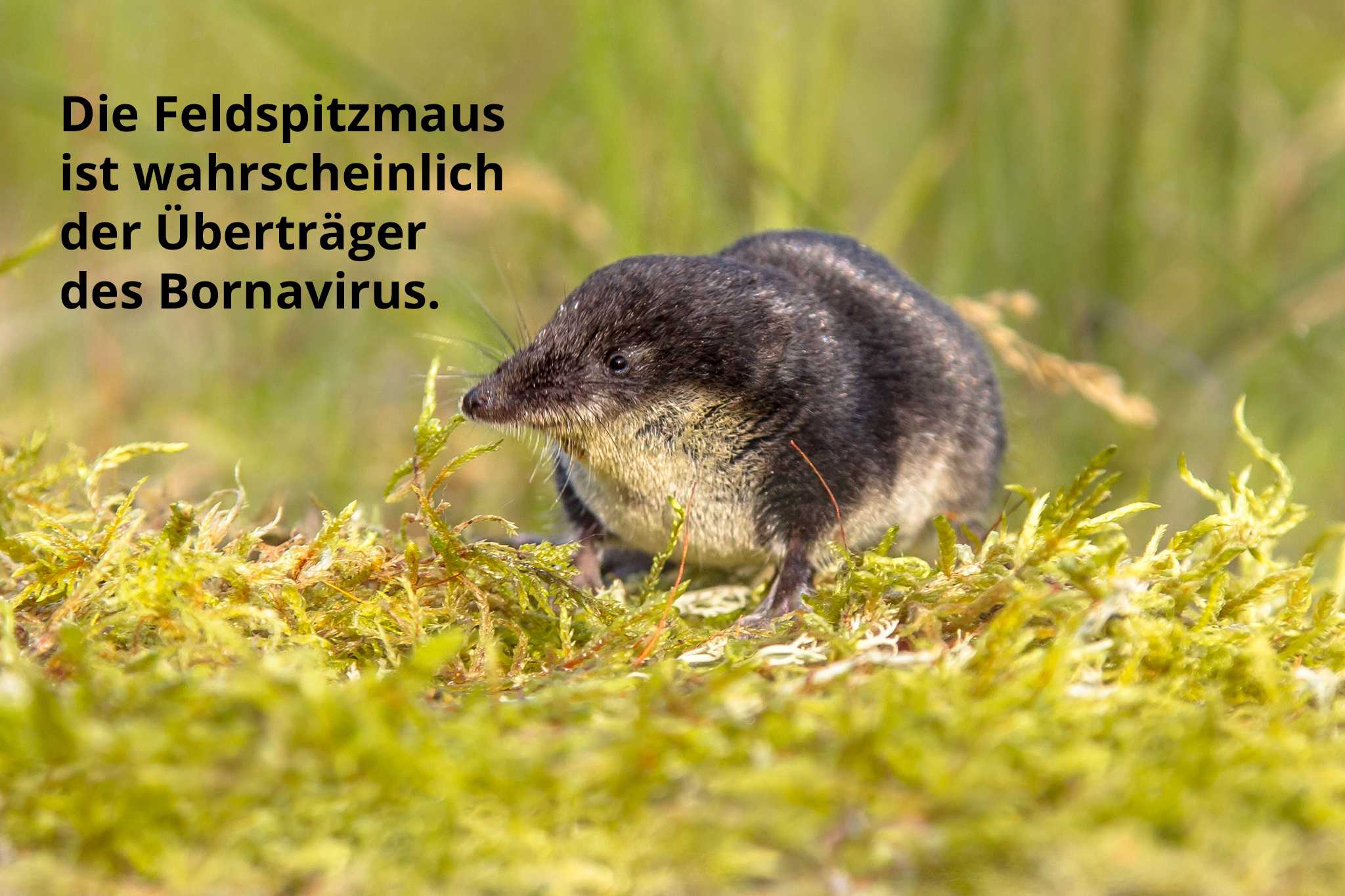 Feldspitzmäuse (Crocidura leucodon) wurden als natürliches Bornavirus-Reservoir identifiziert, wobei infizierte Feldspitzmäuse das Virus vermutlich über Speichel, Urin und Kot ausscheiden. Die Feldspitzmaus ist 6-8 cm groß. Sie ist in Mittel- und Südosteuropa verbreitet. In Deutschland kommt BoDV-1 in bestimmten Gebieten vor, in denen auch die bisherigen Erkrankungen beim Menschen aufgetreten sind (vor allem in Bayern und Gebiete in Ostdeutschland). Darüber hinaus wurde das Bornavirus auch bei Tieren in der Schweiz, in Liechtenstein und in Österreich nachgewiesen.