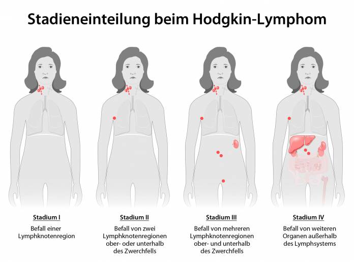 Ausgehend davon wird ein sogenanntes Staging vorgenommen, das ist die Feststellung, in welchem Stadium sich das Hodgkin-Lymphom befindet. Geläufig ist die Ann-Arbor-Klassifikation mit vier Stadien: