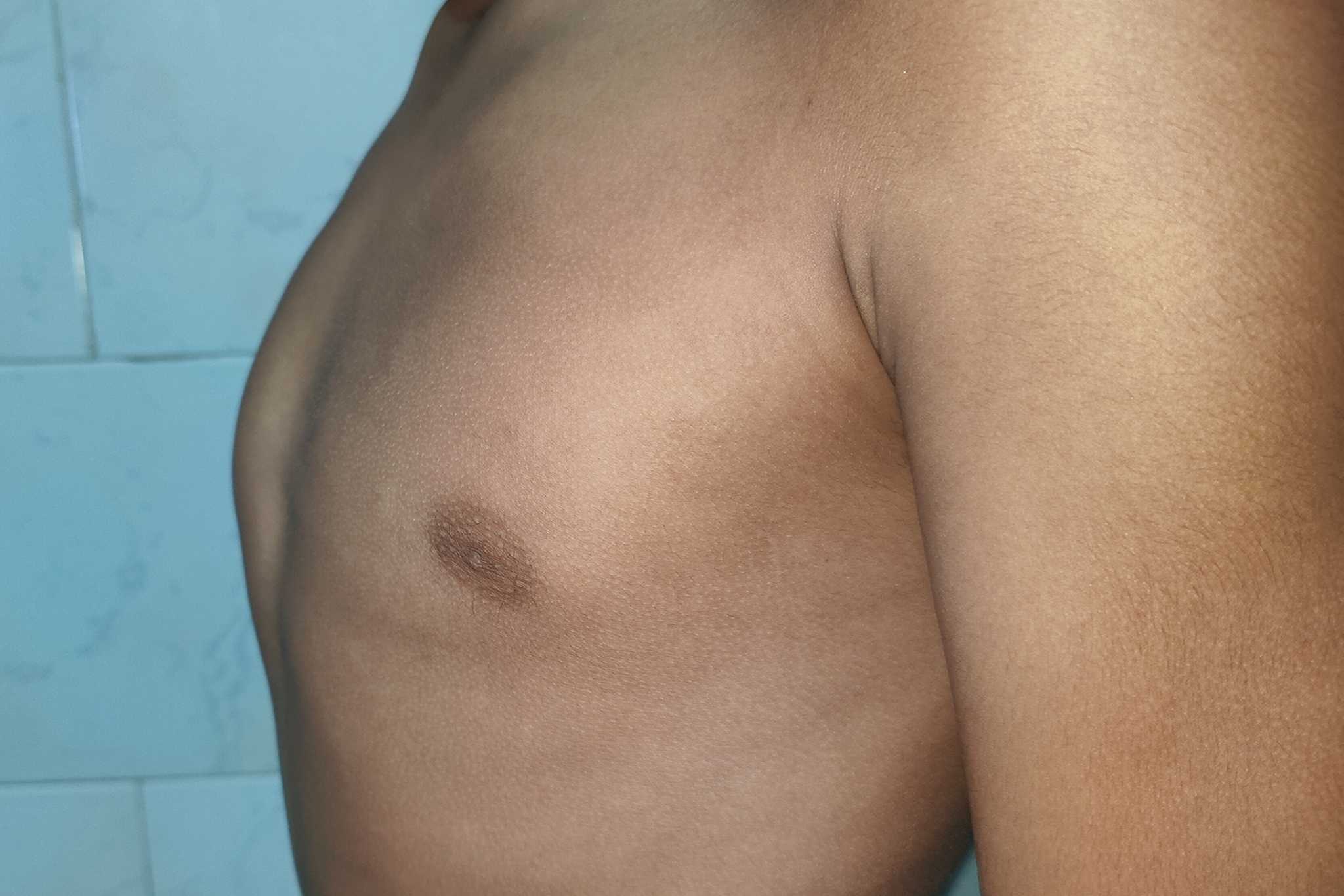 Die abweichende Form des Brustkorbes ist unschwer zu erkennen. Untersucht werden muss aber, ob die Kielbrust (Hühnerbrust) Teil eines weitergehenden Syndroms ist.
