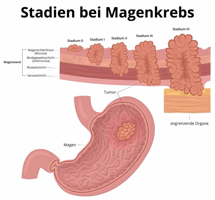 Wurde ein Magenkrebs festgestellt, gibt es von Fall zu Fall erhebliche Unterschiede in der Größe und Ausbreitung des Tumors. Für Betroffene ist es unter anderem wichtig zu wissen, wie die Behandlungsmethode aussehen wird. Diese ist vom Stadium des Tumors abhängig. Die Größe, das Vorhandensein von Metastasen (Tumorherde in anderen Organen) sowie die Beteiligung von Lymphknoten sind die Kriterien, die die einzelnen Entwicklungsstufen charakterisieren. Neben der sogenannten TNM-Klassifikation spielt die Einteilung in Krankheitsstadien eine wichtige Rolle für die Diagnostik. Solche Klassifizierungen vorzunehmen wird auch als „staging“ bezeichnet.