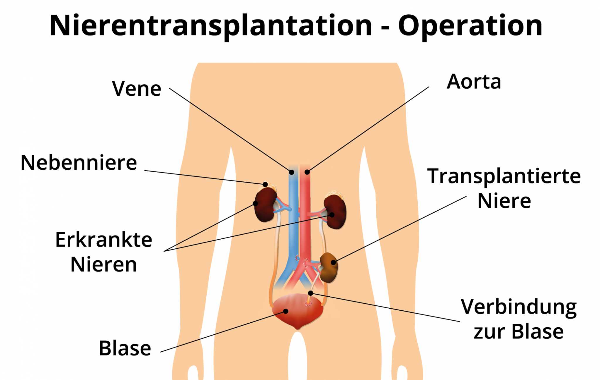 Bis auf wenige Ausnahmen (Infektionen, große Zystennieren, funktionslose Nieren) werden die eigenen Nieren belassen. Dadurch wird die Operation kürzer und weniger belastend. Das bedeutet, dass die Patientinnen und Patienten nach der Operation über drei Nieren verfügen.