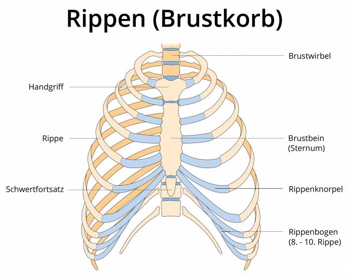 Als Rippenbögen werden die beiden unteren Begrenzungen des Brustkorbs bezeichnet. Es gibt also einen linken und einen rechten Rippenbogen (Arcus costalis), die vorne am unteren Ende des Brustbeins zusammentreffen. Schmerzen im Bereich des Rippenbogens können zahlreiche Ursachen haben. Erkrankungen innerer Organe wie Magen oder Leber können genauso Auslöser sein wie muskuläre Probleme oder Rippenprellungen. Da die Ursachen harmlos, aber auch schwerwiegend sein können, sollten Schmerzen am Rippenbogen zeitnah ärztlich abgeklärt werden. Vor allem ist dies dann erforderlich, wenn keine plausible Ursache (Prellung, Überlastung oder Ähnliches) vorliegt.