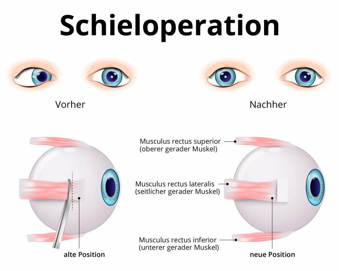 Eine Schieloperation kann nach einiger Zeit zu empfehlen sein, um ein Sehen ohne Doppelbilder zu ermöglichen oder einer Amblyopie vorzubeugen.