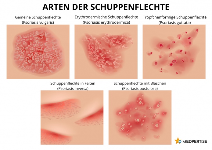 Die Psoriasis vulgaris (gewöhnliche Schuppenflechte) kann weiter in Typ I und Typ II unterschieden werden. Der Typ I ist vergleichsweise schwerwiegend und tritt häufig ab einem Alter von 10 bis 25 Lebensjahren auf. Der Typ II der Psoriasis fängt später im Leben an, oft zwischen 35 und 60 Jahren, und verläuft meist leichter als der Typ I.