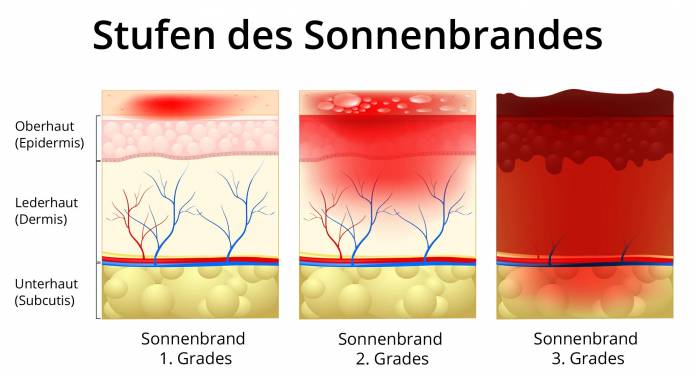 In der Medizin unterscheidet man drei Stufen des Sonnenbrandes: