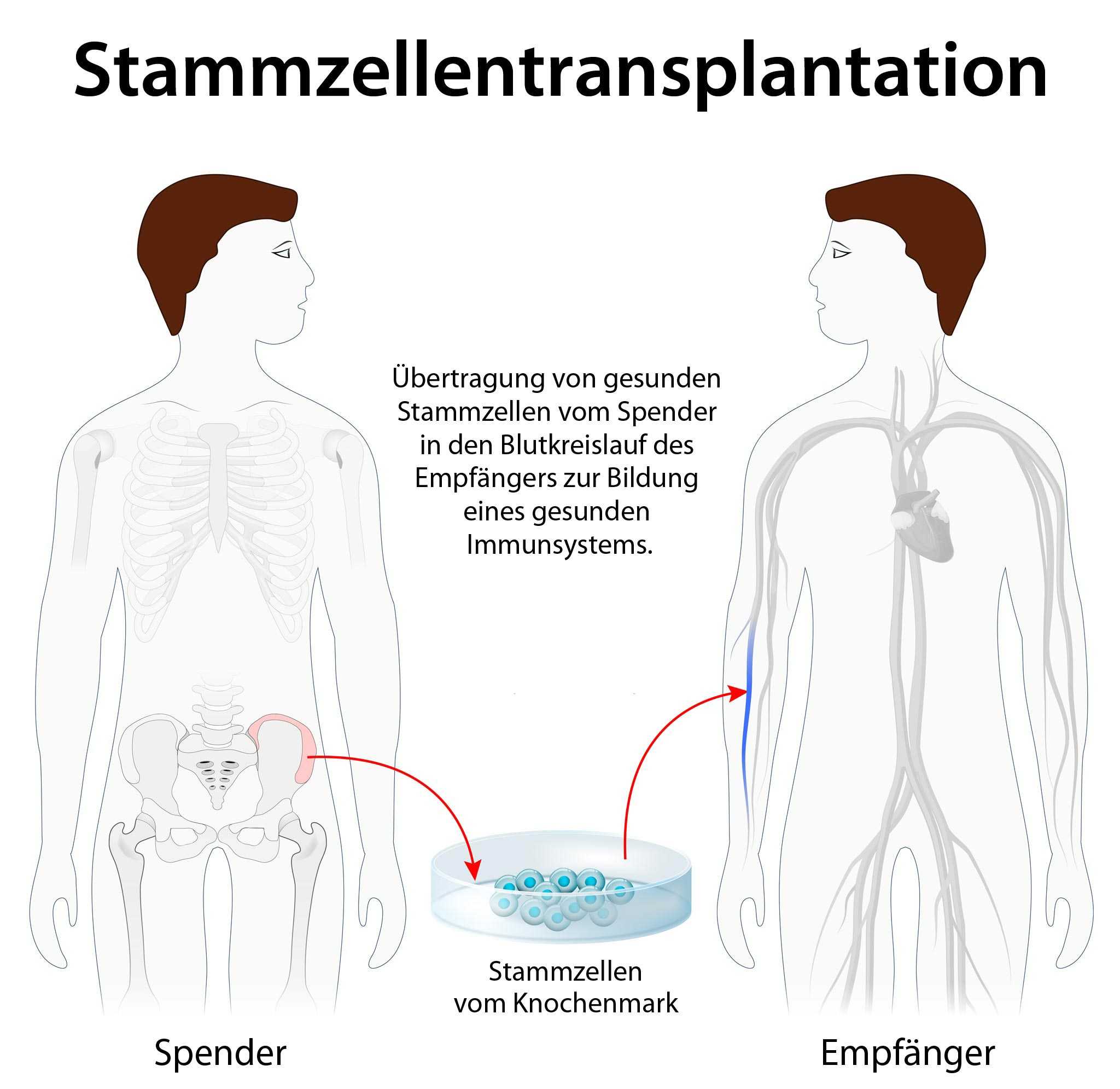 Generell werden zwei Formen der Stammzelltransplantation unterschieden. Die autologe Stammzelltransplantation ist die Einbringung von Stammzellen des Patienten selbst. Die allogene Stammzelltransplantation ist die Überführung von einem anderen Spender, dessen Oberflächenstrukturen der Zellen möglichst ähnlich sind. Dies können Geschwister oder andere Blutsverwandte, aber auch fremde Spender sein, die in einer Datenbank zur Knochenmarkspende erfasst sind.