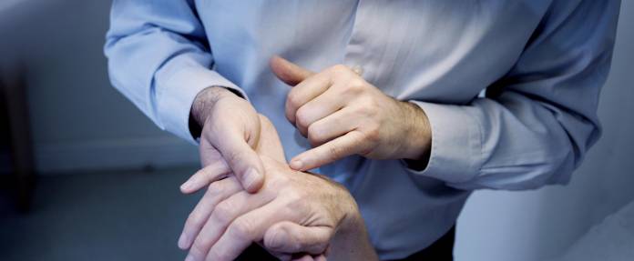 Typische Merkmale für die Bowen-Krankheit sind schuppige, manchmal krustige Hautstellen, die meist rötlich gefärbt sind und sich deutlich von der Umgebung abgrenzen.